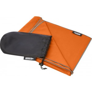 Ez a sporttörölköző nagyon jó nedvszívó, könnyű és gyorsan szárad. Ha a törölközőt összehajtjuk és gumiszalaggal rögzítjük, kis mérete miatt alkalmas edzőterembe, uszodába, vagy kempingezésre. A törölköző 130 x 80 cm méretű, 200 gr/m2-es újrahasznosított PET poliamidból készült, mosógépben 40°C-on mosható. Újrahasznosított PET műanyagból készült tároló tasakkal (20 x 8,5 cm) szállítjuk, amely remek helyet biztosít a logó nyomtatásához.