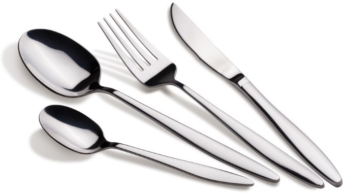 • Anyaga: rozsdamentes acél tükör fényes bevonattal • A szett tartalma: • Étkező kés 6 db 7,0 mm • Étkező villa 6 db 4,0 mm • Étkező kanál 6 db 4,0 mm • Teás kanál 6 db 2,7 mm