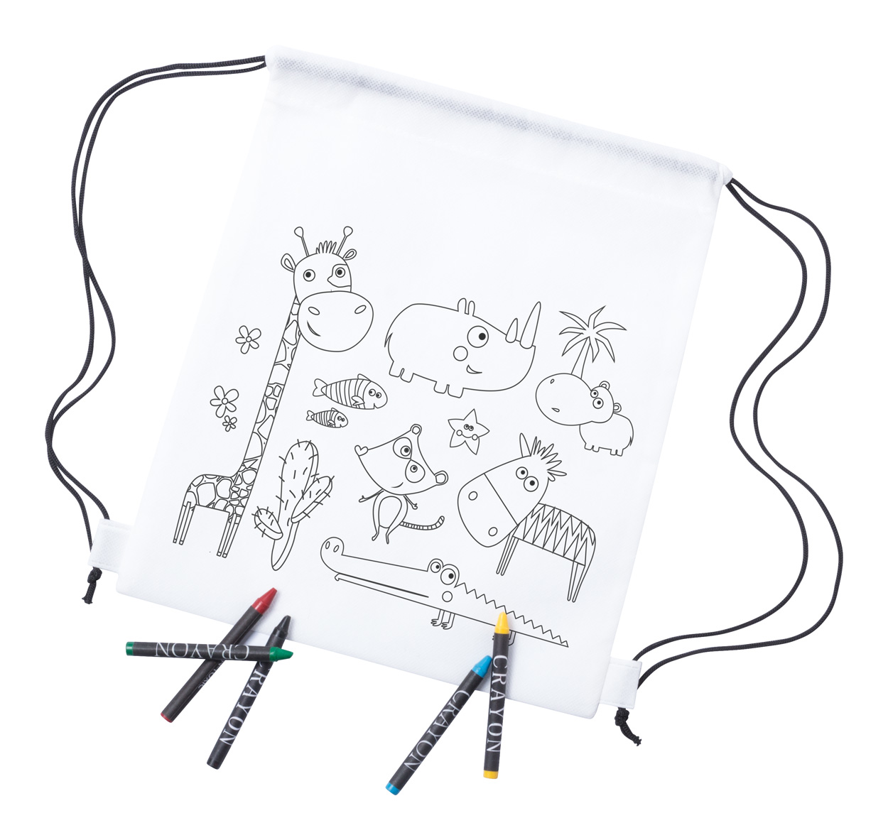 Non-woven anyagból készült színezhető hátizsák gyerekeknek, 5 db zsírkrétával.