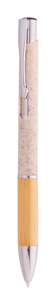 Környezetbarát búzaszalma műanyag golyóstoll bambusz markolattal és fém részekkel. Kék tollbetéttel szállítjuk.