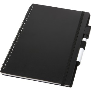 Fenntartható alapanyagból készült füzet a papírfelhasználás csökkentésére összpontosít a környezet kímélése érdekében. Egy idő után jegyzetelés, rajzolás vagy ötletelés után az oldalak megtisztíthatók a markeren lévő radírral, hogy újra felhasználhassák az oldalakat. Szokásos szövet kendővel is tisztítható (nem tartozék). 20 lapot (40 oldal) tartalmaz, félig pontozott és félig üres elrendezéssel, valamint egy fekete szövegkiemelőt.