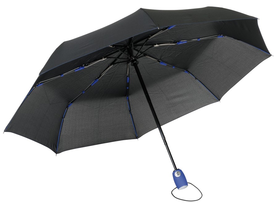 STREETLIFE automata viharálló összecsukható esernyő: a fogantyúval megegyező színű varrással, 3 részes fém szerkezet, fém/üvegszálas bordákkal, fém végekkel, gumiborítású fogó csuklópánttal, tépőzáras összefogóval, tépőzáras, színben hozzáillő varrással ellátott tokkal