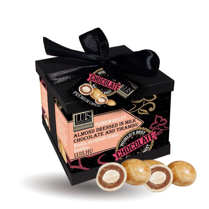 Mandula, tejcsokoládés tiramisu bundában – díszdobozban