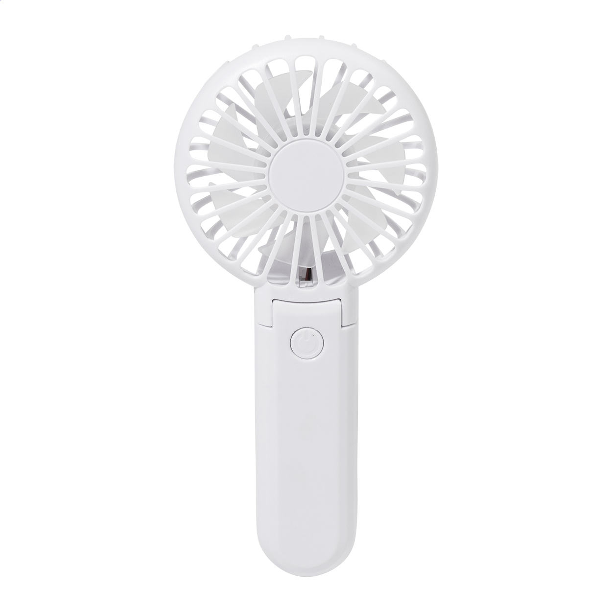 Újrahasznosított ABS elektromos kézi ventilátor beépített USB újratölthető akkumulátorral (400 mAh). Állítható szöggel és 3 sebesség fokozattal. USB töltőkábellel.