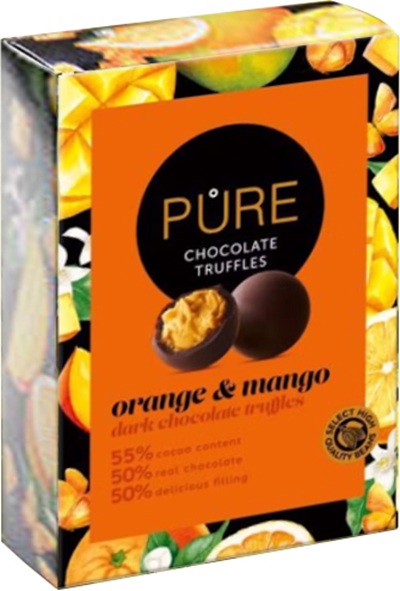 Prémium minőségű étcsokoládé trüffel golyók, melyeket frissítő narancsos-mangós krémmel töltenek meg. A gyümölcsös ízek és a gazdag étcsokoládé harmonikus kombinációja tökéletes élvezetet nyújt minden csokoládé rajongónak. A termék több ízben/kivitelben elérhető.